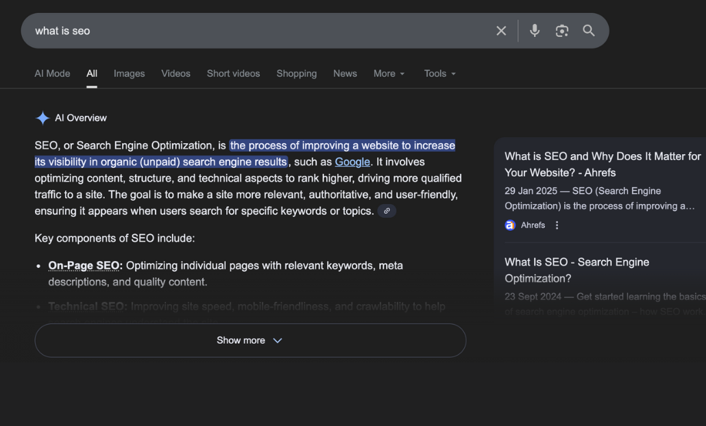 AI Overviews aren't going anywhere. Google's increasingly using your content not just to rank, but to respond. The easier your content can be summarised, cited and trusted by AI systems, the better your organic visibility.